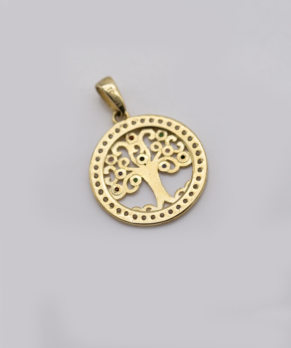 Anhänger Lebensbaum mit Zirkonia-Mulicolor 333er Gelbgold