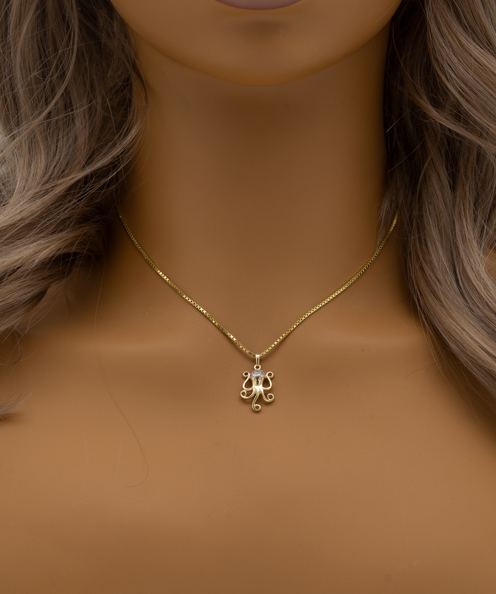 Anhänger Oktopus mit Zirkonia 333er Gold bicolor
