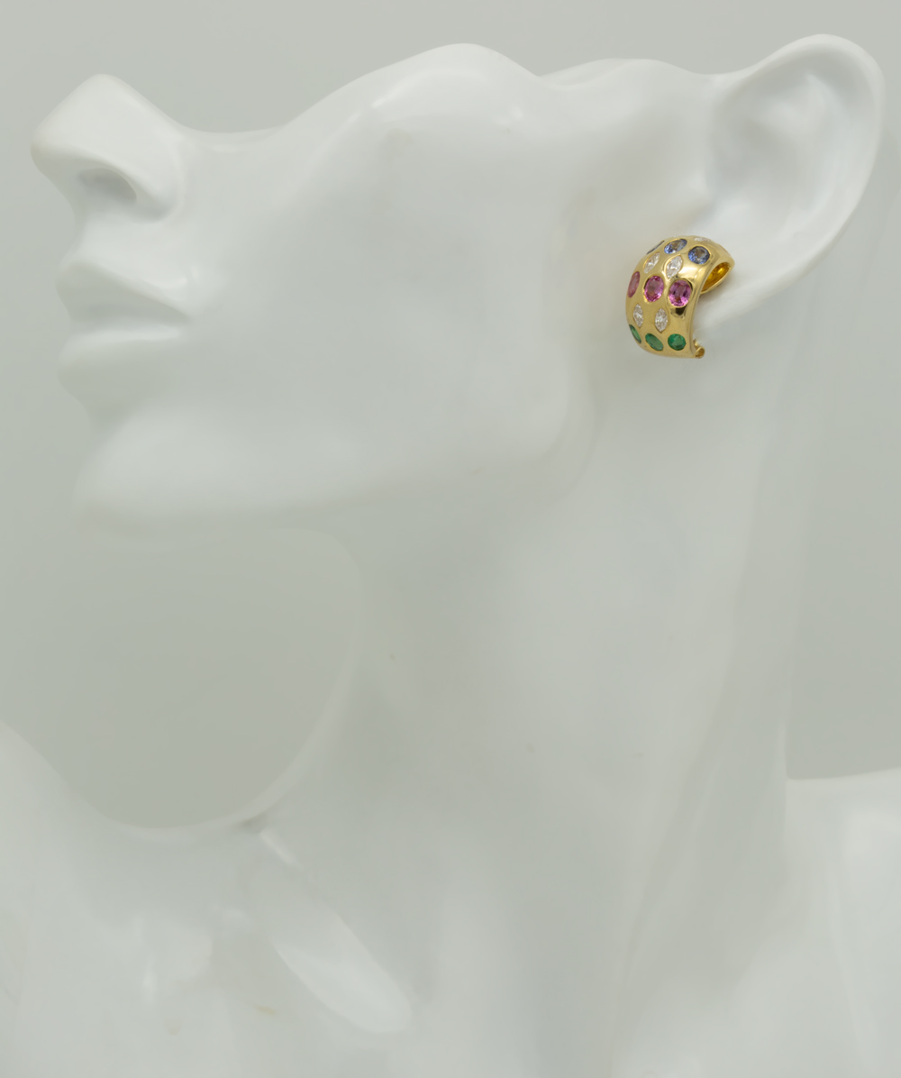 Creolen mit Navett Diamanten und Farbsteine 750er Gelbgold