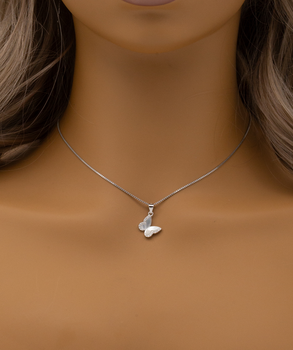 Produktinformationen "Perlmuttanhänger "Schmetterling" mit Zirkonia 925er Silber "