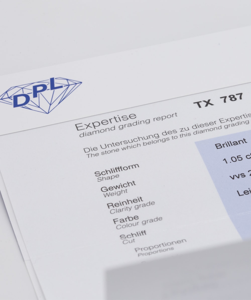 | Qualität: | VVS1 - VVS2 > sehr sehr kleine Einschlüsse, die auch bei 10-facher Vergrößerung nur extrem schwer erkennbar sind |